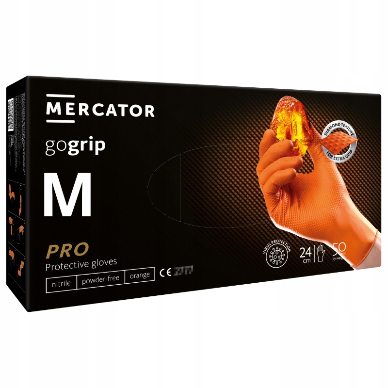 Specjalistyczne rękawice nitrylowe "Powergrip" marki Mercator.