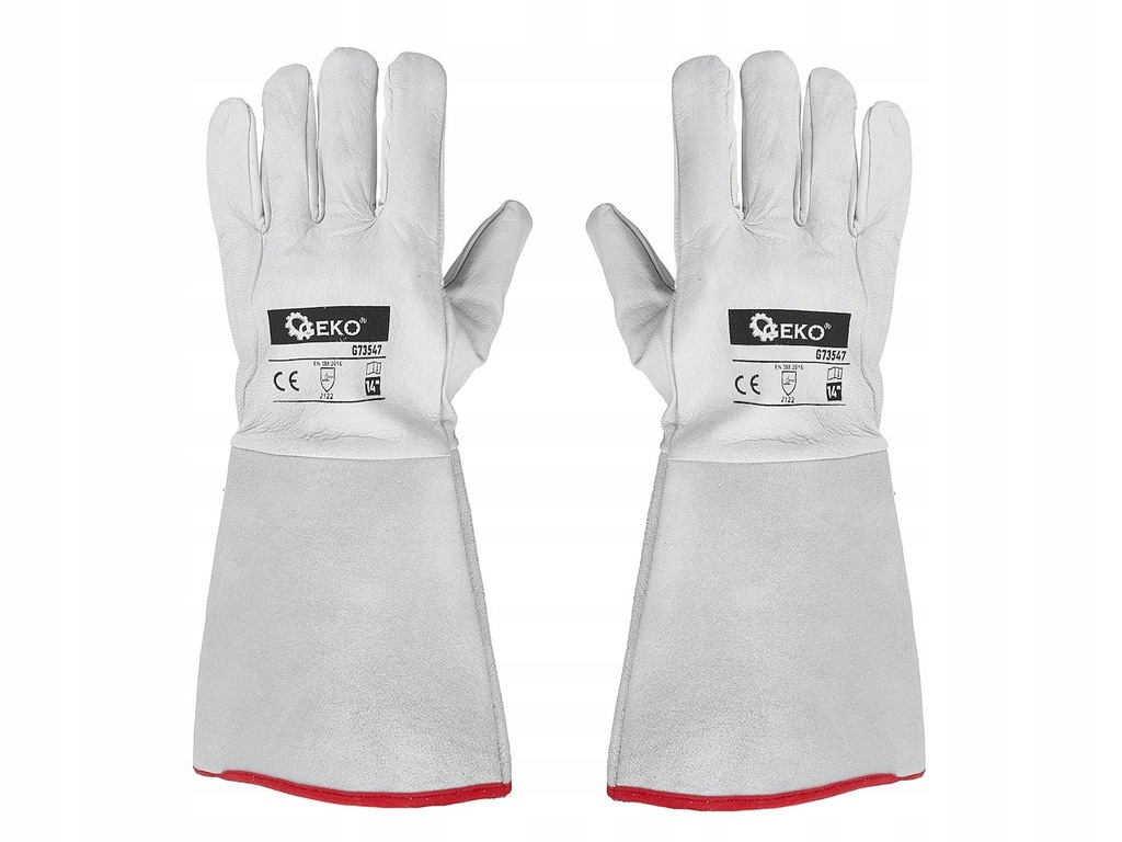 - Długi mankiet (14”) – przedłużona część ochronna zabezpiecza nie tylko dłoń, ale również przedramię przed gorącem i iskrami powstającymi podczas spawania.