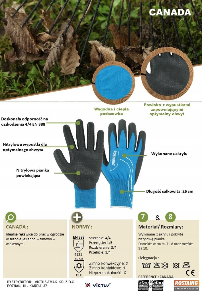 Rękawice firmy ROSTAING są produkowane w oparciu o najnowsze osiągnięcia technologiczne w dziedzinie przemysłowej, budowlanej oraz bezpieczeństwa. Rękawice CANADA zapewniają komfort pracy podczas każdej pracy w chłodne dni.