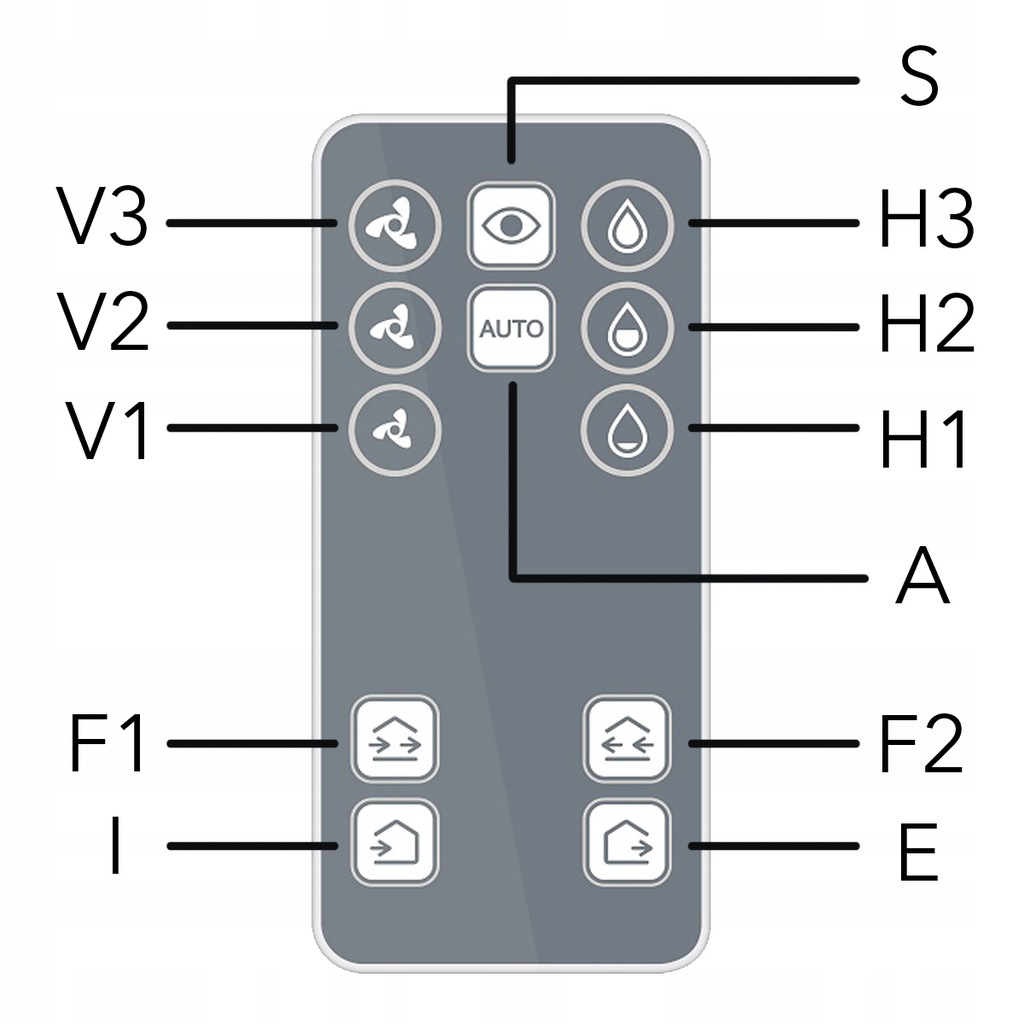 - Funkcja higrostatu z możliwością wyboru trzech wartości : 40% - 55 % - 70%Możliwe jest ustalenie progu maksymalnej wilgotności dla higrostatu, by dostosować go do pomieszczenia, w którym pracuje. Gdy poziom wilgotności względnej zostanie ustalony, urządzenie będzie wyciągać powietrze z pomieszczenia w sposób ciągły, aż do momentu, gdy odczyt z czujnika spadnie poniżej zadanej wartości. W przypadku zespolonej pracy kilku jednostek, wszystkie urządzenia będą pracować w trybie wyciągowym, aż do momentu, gdy wilgotność obniży się do żądanej wartości. Domyślnie został ustalony poziom H2, co odpowiada wilgotności względnej na poziomie RH: 55%.