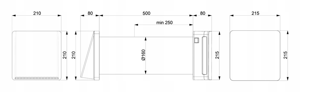 - W zestawie kanał od długości 500 mm, który można skrócić do 250 mm. Dopuszczalna maksymalna długość kanału to 3 m (2.5 m przy jednym kolanku 90°)