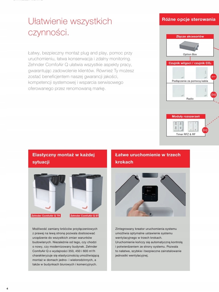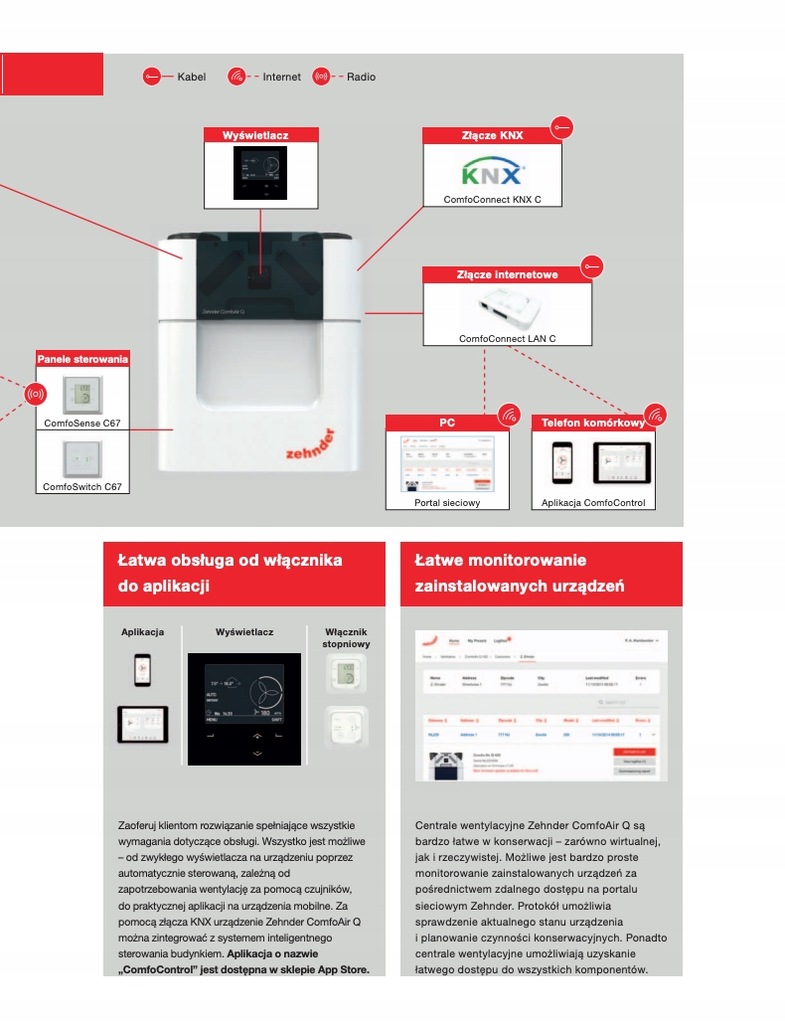- urządzenie marki Zehnder ComfoAir Q350 PL L VV TR ERV
