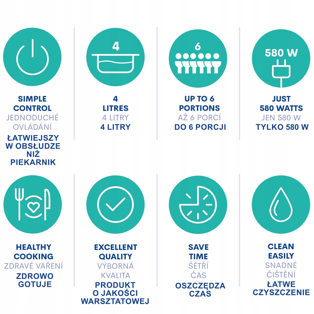 - Pojemność: 4 l (od 2 do 6 porcji)