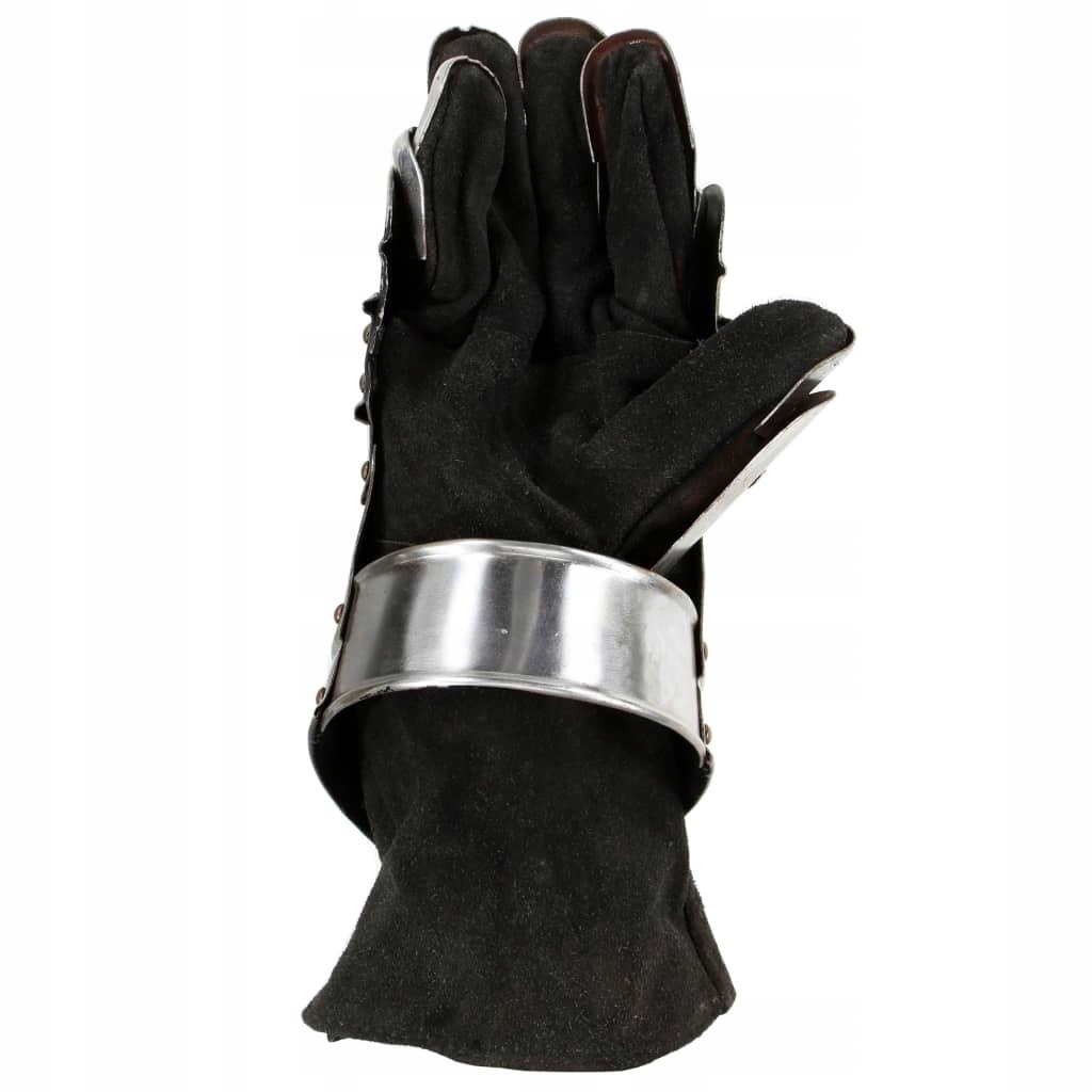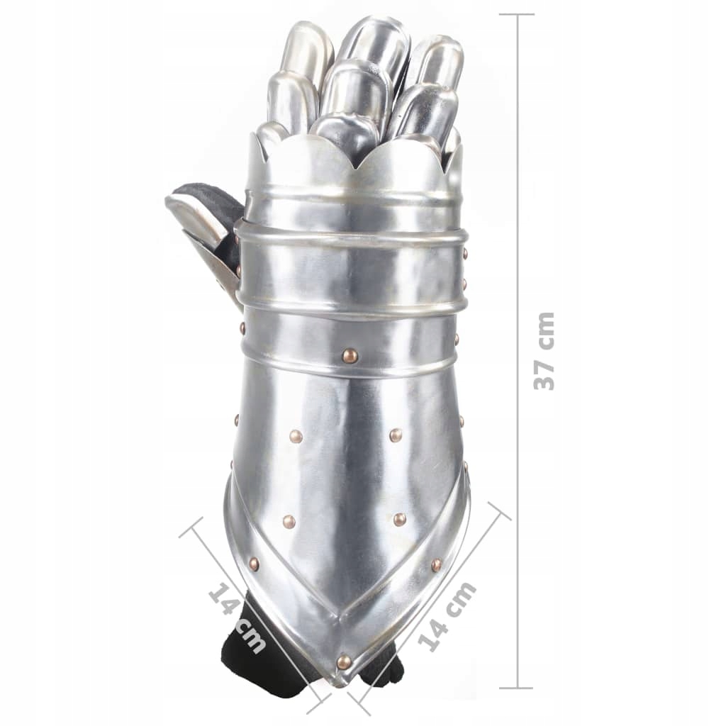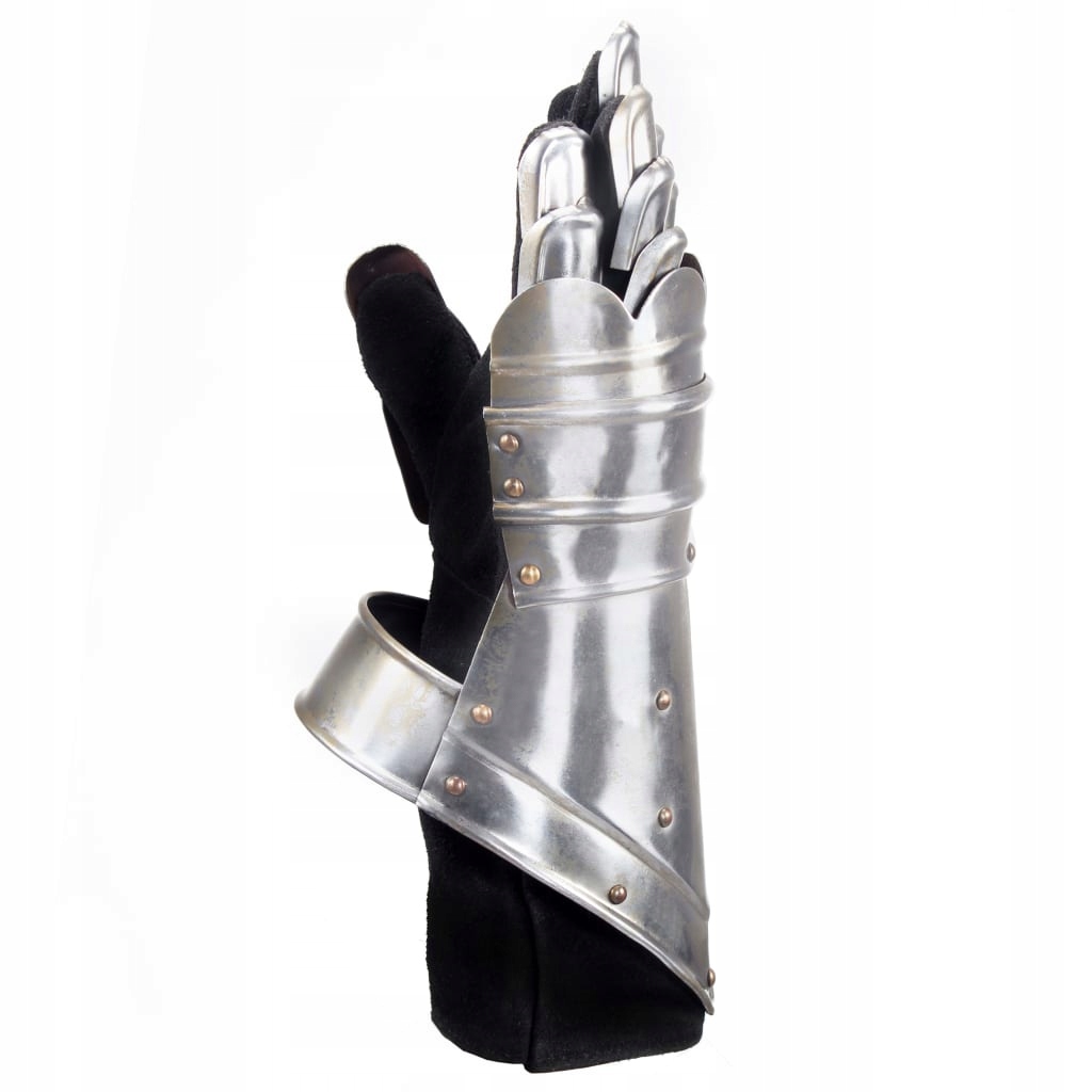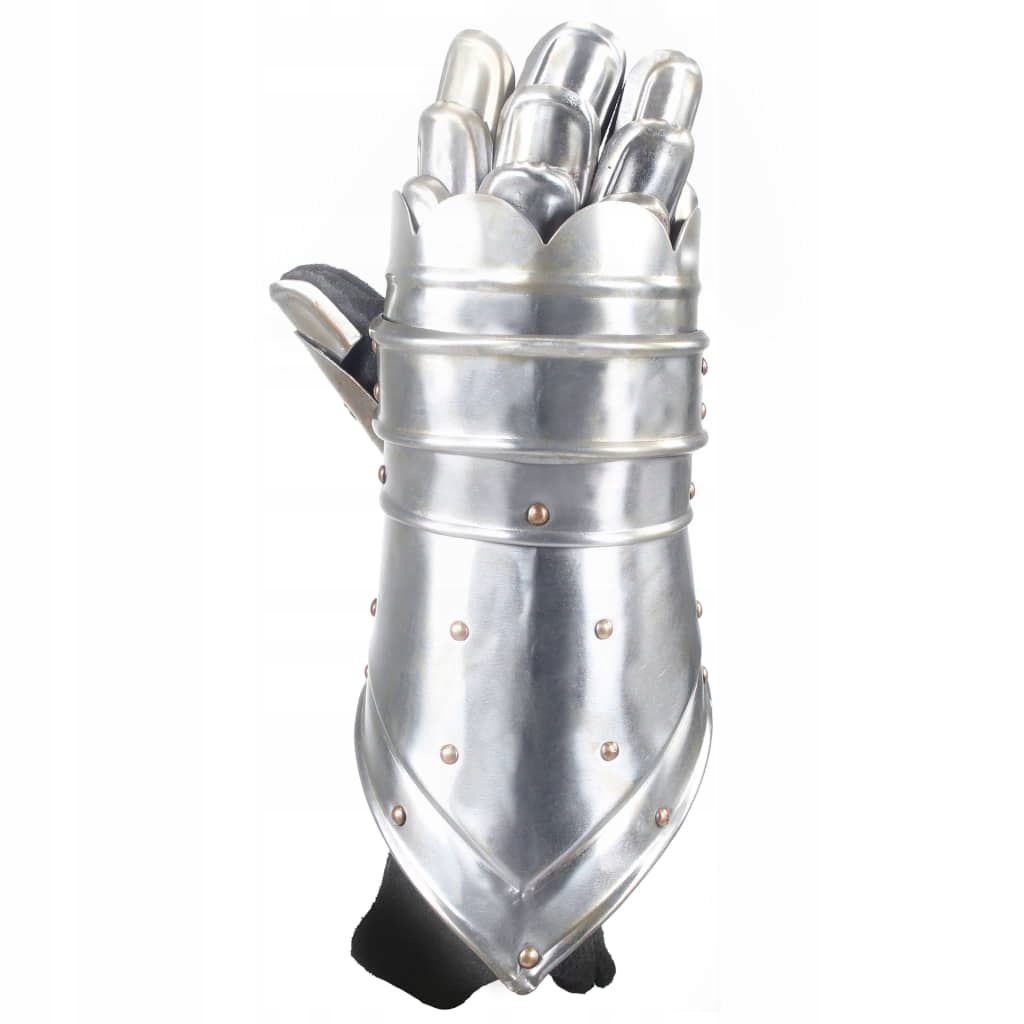 Te rękawice są dokładną repliką oryginalnych średnioweicznych rękawic rycerskich. Rękawice do zbroi łatwo się nosi i umożliwiają pełny zakres ruchu dłońmi, palcami i nadgarstkami. Każdy palec pokryty jest stalową łuską, która zapewnia elastyczność i mobilność. Rękawice wykonane są z polerowanej stali o grubości 1,024 mm z wygodną, aksamitną wyściółką.