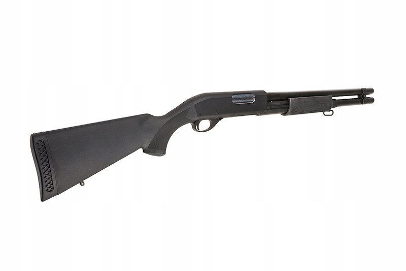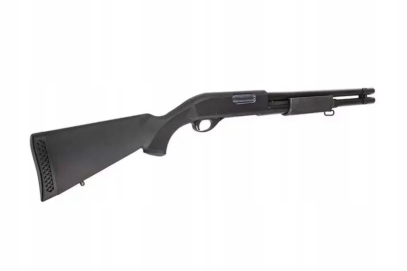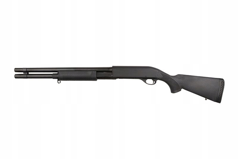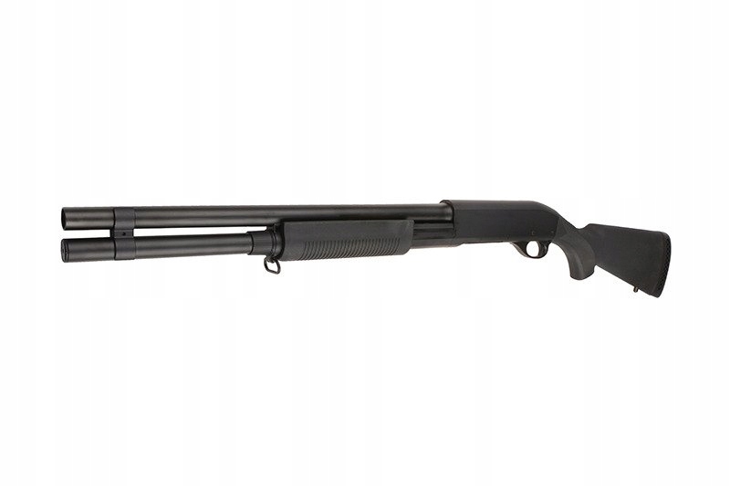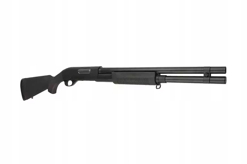 Rodzinę strzelb Cymy charakteryzują dokładnie te same cechy, co inne produkty tej znanej marki. To przede wszystkim solidna jakość wykonania i dobre osiągi w połączeniu z atrakcyjną ceną. CM350LMN to replika strzelby o napędzie spreżynowym, a co najważniejsze - posiadająca aż 3 lufy wewnętrzne! Pozwala to na wystrzelenie 3 kulek jednocześnie za jednym pociągnięciem spustu, a dzięki temu uzyskanie zdecydowane przewagi na polu walki. Szczególnie podczas airsoftowych potyczek o charakterze CQB (choć nie tylko!). 6mm amunicję ładuje się do dołączonej atrapy shellsa o pojemności 30 kulek, którego następnie umieszczamy w komorze nabojowej, co nadaje użytkowaniu repliki dodatkowego powiewu realizmu.
