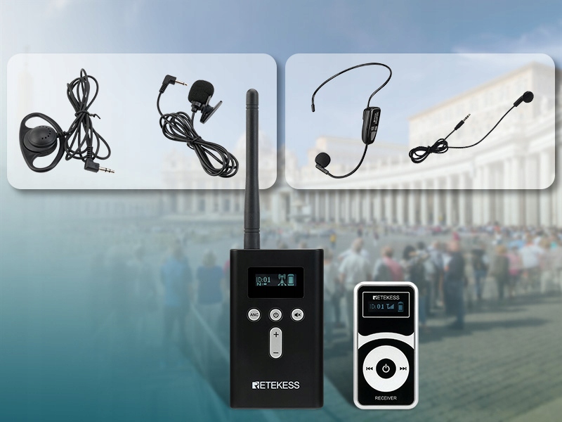 T130pro tourguide system can work with wireless microphone and one-sided headset