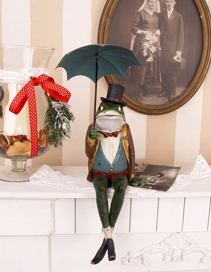 Uroczy Ropuch z Parasolem, to niezwykła figura przeznaczona do posadzenia na krawędzi półki, parapetu, czy szafki (przy otwieraniu drzwiczek należy uważać, by nie spadła na ziemię). Wykonanie zainspirowane powieścią dla dzieci „O czym szumią wierzby” z 1908 roku, której autorem jest brytyjski pisarz Kenneth Grahame (1859-1932).