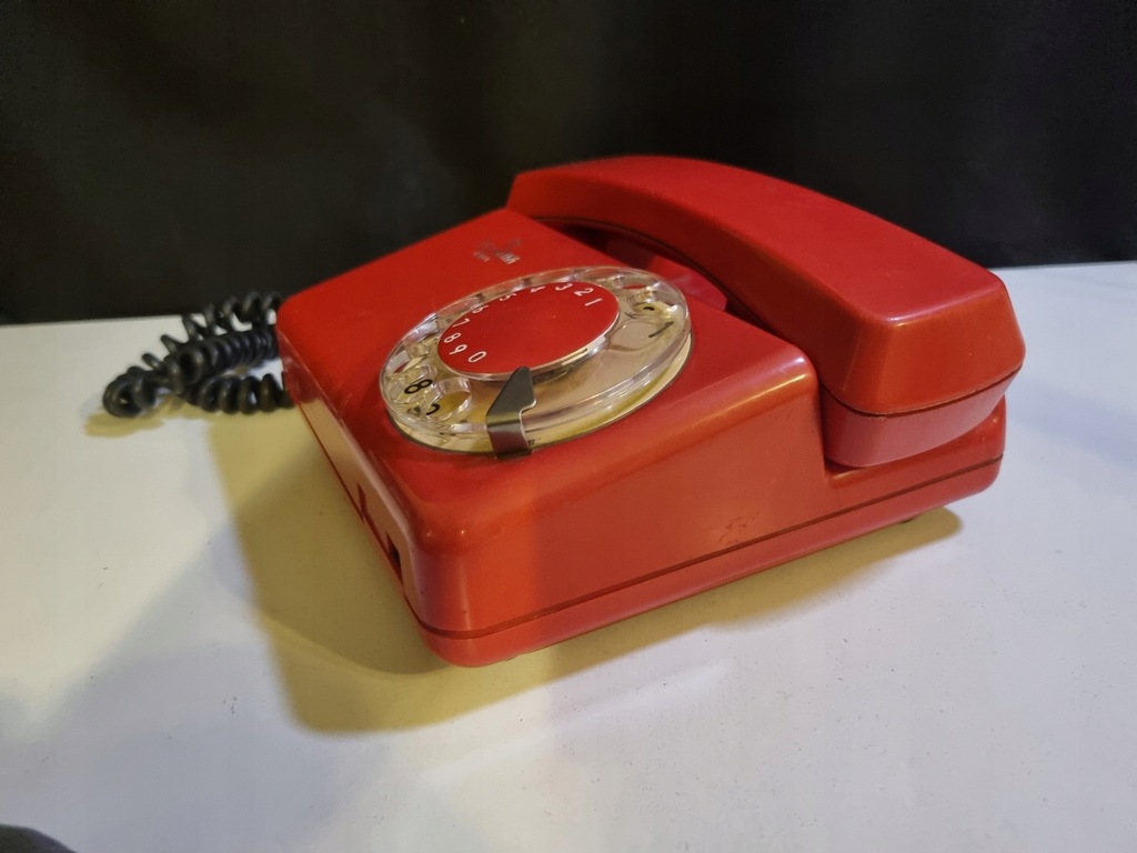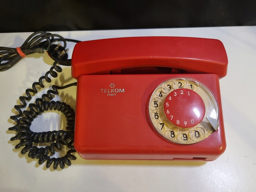 Retro Telefon stacjonarny tarczowy Telkom RWT Tulipan, czerwony jak PZPR