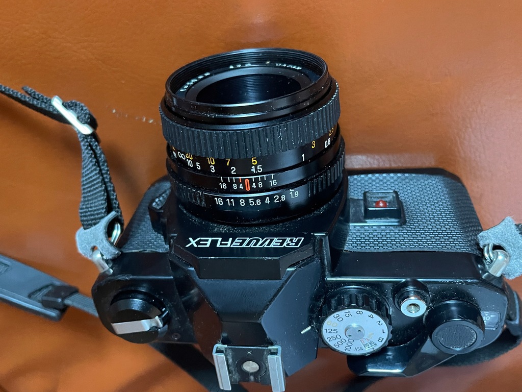 kolejny skarb z rodzinnej kolekcji! - japonski aparat analogowy Chinon ( sprzedawany w Europie pod nazwa Revueflex ) z oryginalnym , standardowym obiektywem 50mm 1:1,9 t smej marki. Jesli zastanawiasz sie nad zakupem analoga z obiektywami na gwint M42 to kup TEN. O niebo lepiej wykonany i bardziej niezawodny niz cenione u nas Praktice o Zenitach nie wspomne :-).Po prostu dobry sprzet ktory posluzy lata przy duuuzym zadowoleniu przyszlego wlasciciela ze zdjec najwyzszej jakosci. Idealny zarowno do nauki jak i zaawansowanych fotografow. Dostaniesz maly gratisik w postaci ochronnego filtra ;-) Polecam !