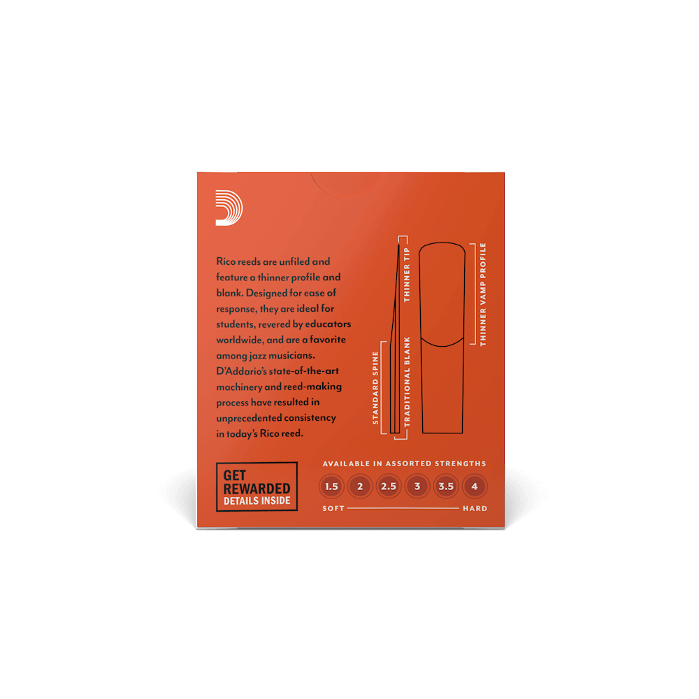 Najpopularniejsze na świecie stroiki od przeszło 70 lat. Stroiki w sławnym „pomarańczowym” pudełku zostały zaprojektowane aby grało się po prostu łatwiej. Łatwość grania, przystępna cena, dostępność w trzech różnych opakowaniach to wszystko sprawia, że „pomarańczowe” Rico to jedne z najchętniej kupowanych stroików.
