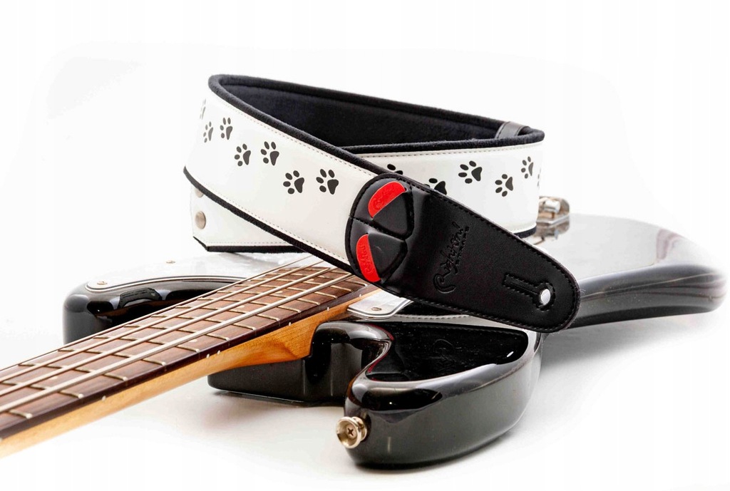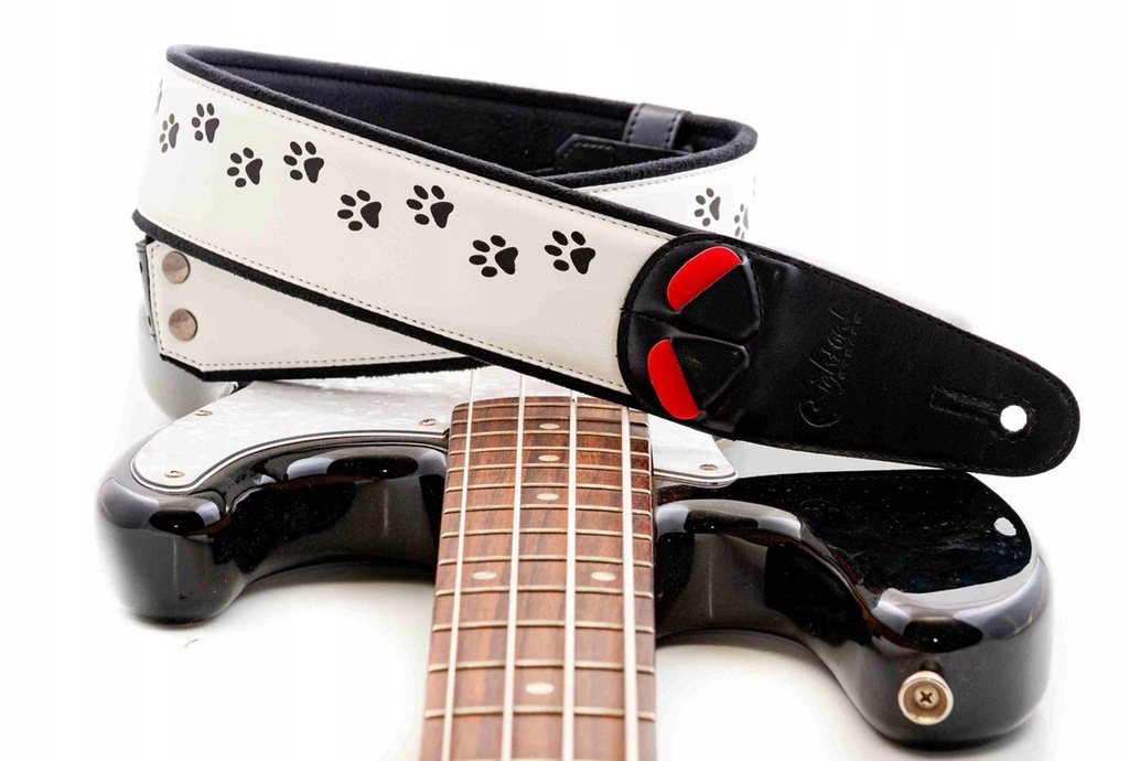 CAT White Guitar Strap to wyjątkowy pasek dla gitarzystów, którzy chcą wyróżnić się na scenie i dodać odrobinę stylu do swojego instrumentu. Z subtelnym wzorem kocich łapek, jest idealnym wyborem dla miłośników kotów oraz muzyków ceniących unikalny design.