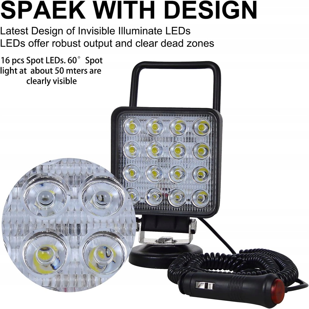 ☑️ Wysokowydajna lampa robocza LED 4 cale, zasilana napięciem 12 V / 24 V, generuje światło 6000 K o mocy 4800 lumenów – skutecznie rozświetla ciemność i zwiększa pole widzenia