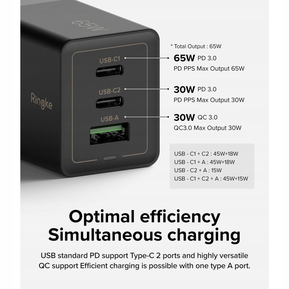 ŁADOWARKA SIECIOWA RINGKE GAN 3-PORT NETWORK CHARGER 65W BLACK