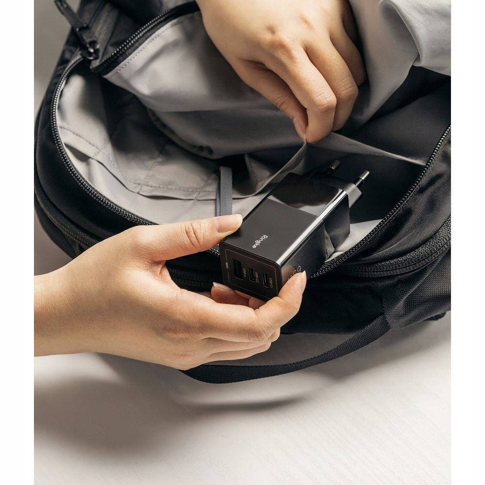 Dzięki zastosowanej technologii z użyciem Galium Nitride, ładowarka rozprasza mniej ciepła, co pozwala na błyskawiczne ładowanie przy zminimalizowanym rozmiarze urządzenia. Wewnętrzny chip zarządza bezpiecznym rozprowadzeniem prądu i rozdzieleniem napięcia na każdy z portów.