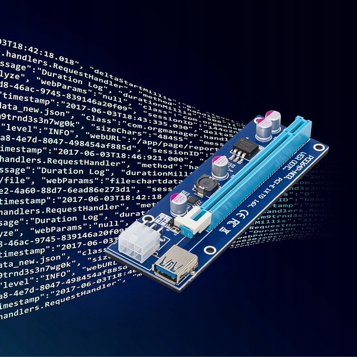 Riser PCI-E Qoltec 007C do koparek kryptowalut i PC, czarny/niebieski