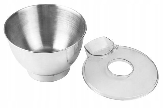 Przykręcana misa ze stali nierdzewnej, wraz z pokrywką, która zabezpiecza aby mieszane produkty nie wydostały się na zewnątrz. Pokrywka posiada również zamykany otwór, który umożliwia dodawanie składników podczas pracy miksera