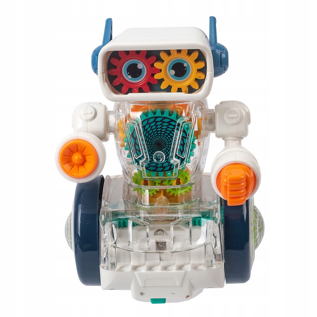 Robot z trybikami to wyjątkowo interesująca zabawka dla maluchów, dostarczająca mnóstwo radości i wspaniałej zabawy. Zabawka została zrobiona w ciekawym wykonaniu z wysokiej jakości tworzywa sztucznego w żywej kolorystyce. Posiada ona efekty świetlne i dźwiękowe oraz specjalny mechanizm z trybików, umieszczony w przeźroczystej obudowie, który porusza się wraz z ruchami robota. Wymaga zasilania 3 bateriami AA 1.5 V (nie dołączono), aby zaświeciły się przeróżne kolorowe światła i zaczęła grać muzyka. Robot pozytywnie wpływa na prawidłowy rozwój dziecka poprzez stymulację zmysłu wzroku, słuchu i dotyku, co jest kluczowe w procesie uczenia się i poznawania otaczającego świata. Ta zabawka to prawdziwa gratka dla miłośników robotów, która wzbudzi ciekawość w każdym z nich.