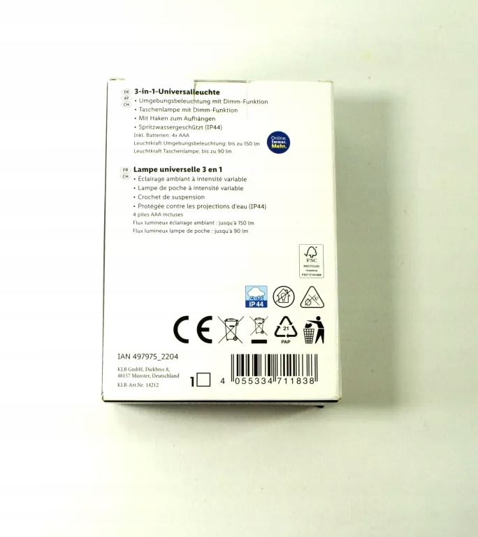 Z ochroną przed bryzgami wody (IP44) Latarka kempingowa Nastrojowe oświetlenie z funkcją ściemniania Latarnia kieszonkowa z funkcją ściemniania Z hakiem do zawieszania Baterie w zestawie: 4 x AAA LED