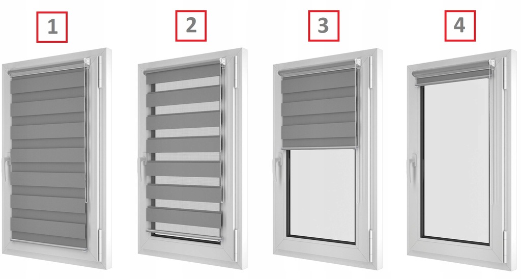 Roleta Mini Dzień Noc 4Dekor to dwufunkcyjna roleta z płynną regulacją poziomu zaciemnienia. System ułożonych naprzemiennie transparentnych pasów siateczki i pasów nieprześwitującej tkaniny pozwala całkowicie zasłonić okno lub wprowadzić do wnętrza subtelne światło. Mechanizm rolety umożliwia dowolną regulację dopływu światła do pomieszczenia. Roletę można także zupełnie podnieść, dzięki czemu pomieszczenie będzie bardzo jasne. Montaż rolety jest łatwy i bezinwazyjny – nie wymaga wiercenia ani użycia narzędzi.