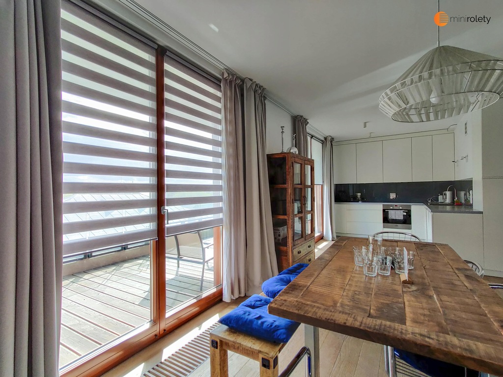Stopień zaciemnienia: regulowany dopływ światła (im ciemniejszy kolor tkaniny tym większy efekt zaciemnienia)