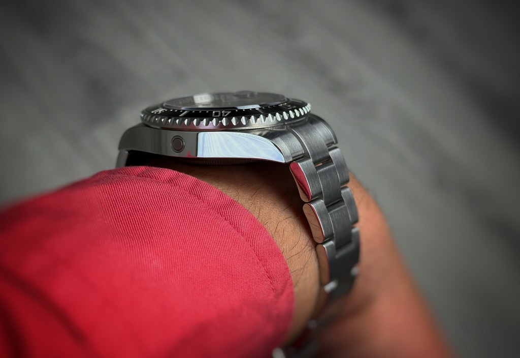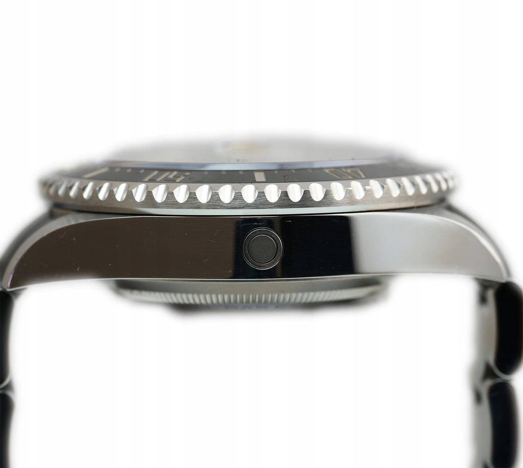 Średnica koperty wynosi 43 mm (46 mm z koronką), 52 mm ‘lug to lug’, wysokość 16 mm. Koperta wykonana jest ze stali szlachetnej wysokiej jakości. Zegarek posiada czarną tarczę z biało srebrnymi indeksami wykonanymi z 18-sto karatowego białego złota. Na godzinie trzeciej okno daty wraz z okiem cyklopa. Całość zamknięta pod szafirowym szkłem, odpornym na zarysowania. Sygnowana, zakręcona koronka. Ceramiczny bezel w kolorze czarnym.