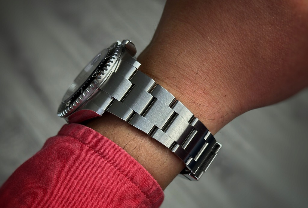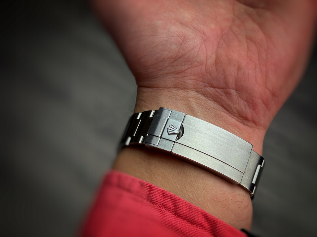 Zegarek posiada oryginalną bransoletę typu Oyster, zapięcie na zatrzask.