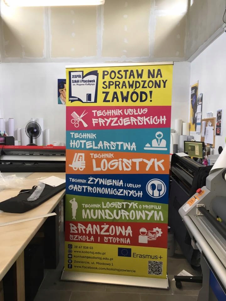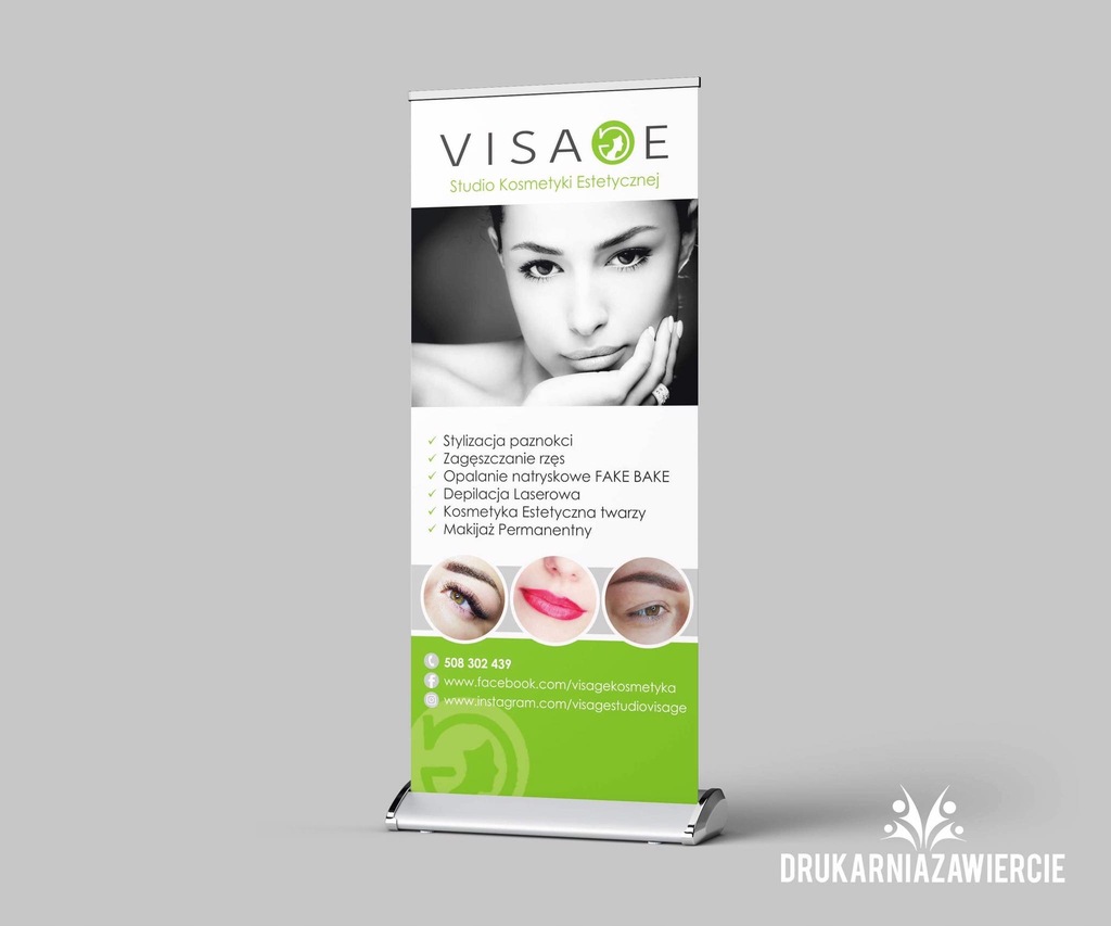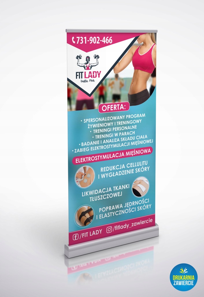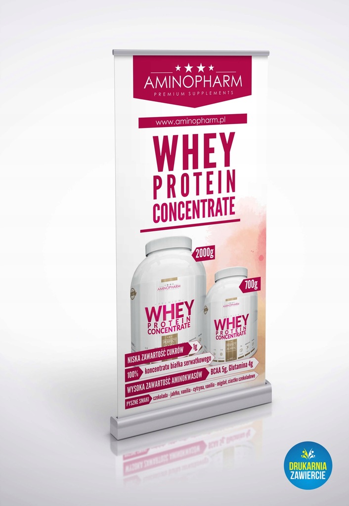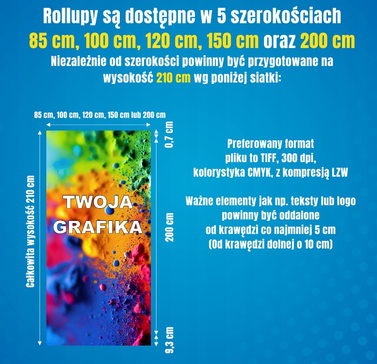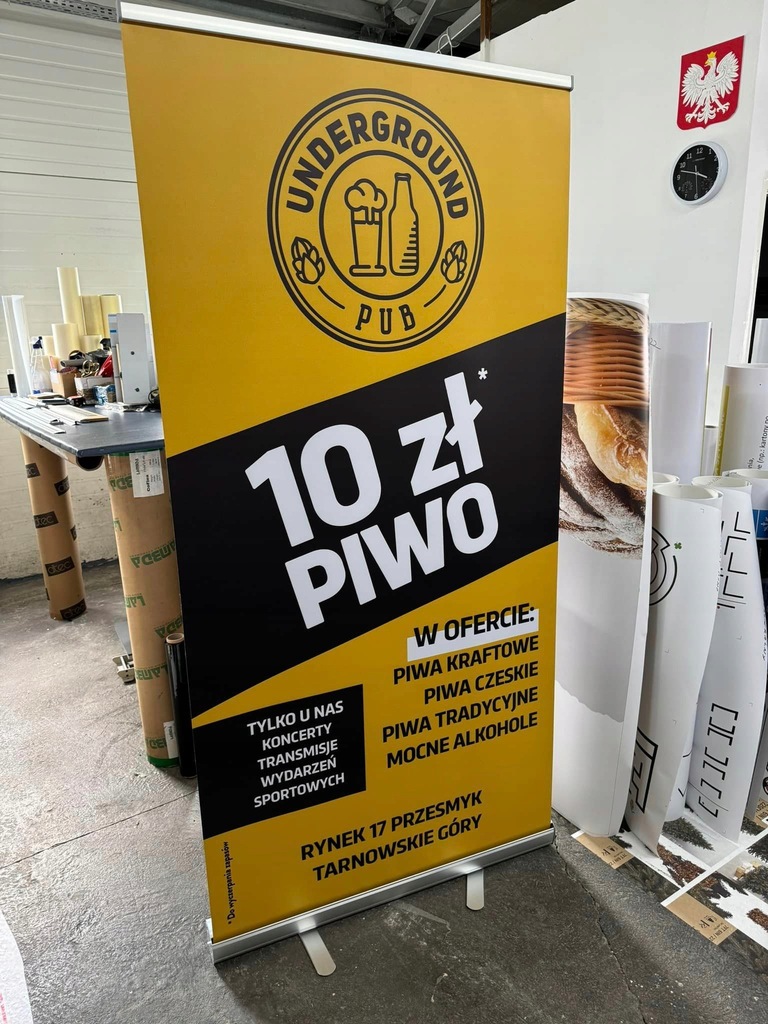 Podstawowy rollup w naszej ofercie z Twoim dowolonym wydrukiem 85x200cm w gotowej kasecie compact z zakutym wydrukiem na mocnym banerze wraz z torbą transportową.