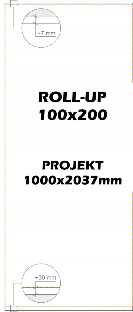 spady: góra 7mm, dół: 30mm (proszę nie umieszczać ważnych elementów grafiki będą nie widoczne)