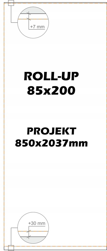 spady: góra 7mm, dół: 30mm (proszę nie umieszczać ważnych elementów grafiki będą nie widoczne)