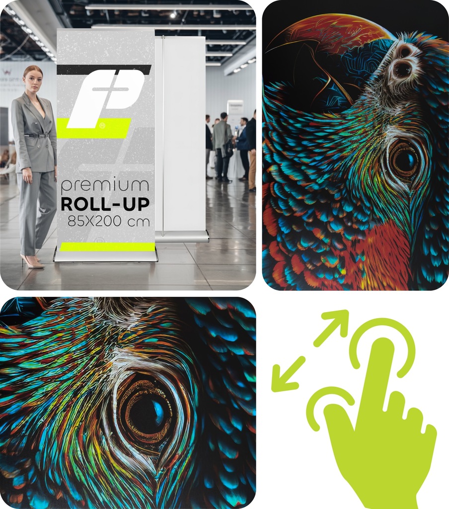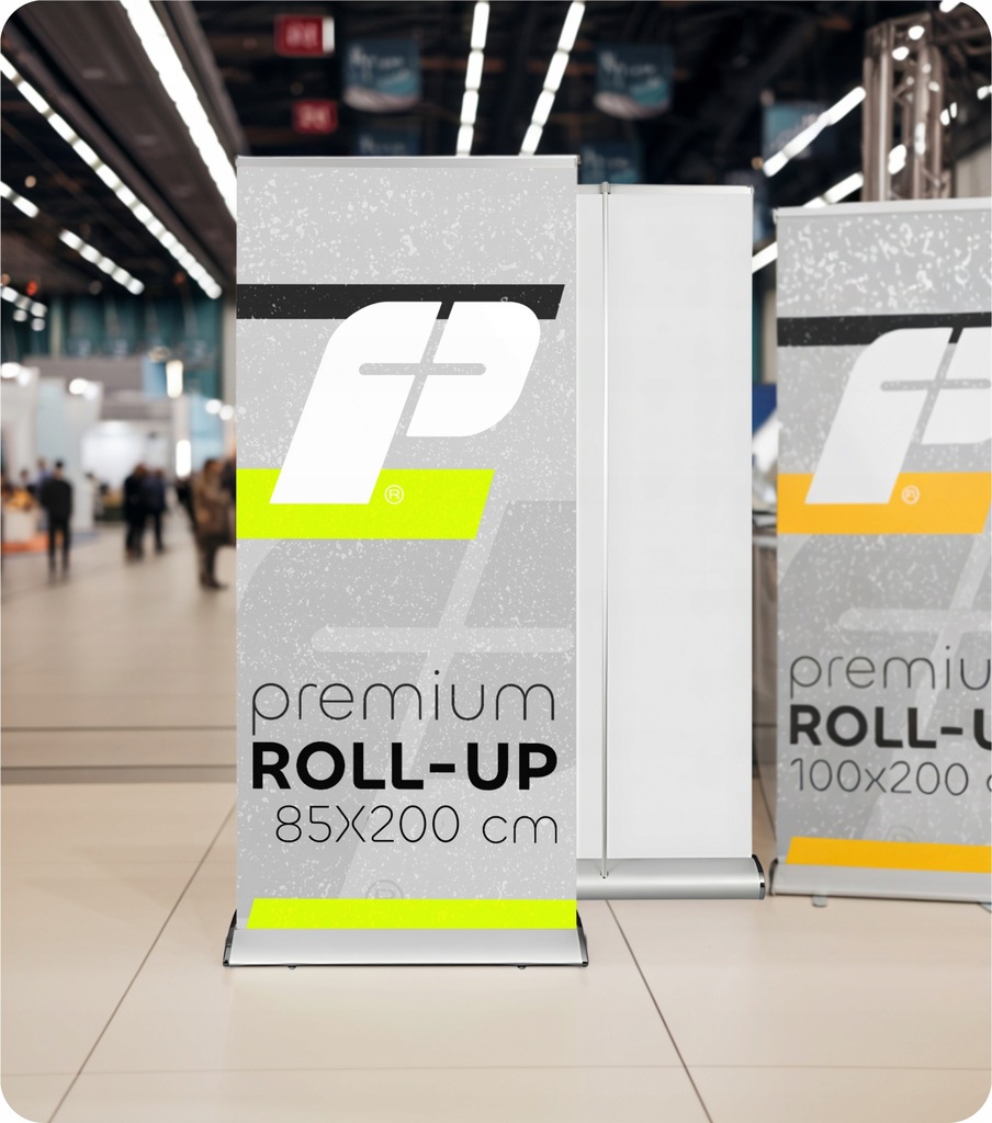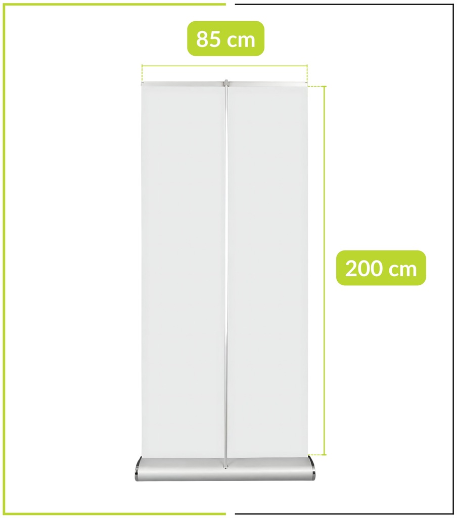 Roll-up w rozmiarze 85x200 cm z kasetą typu EXCLUSIVE to luksusowe rozwiązanie promocyjne, które łączy unikalny design z najwyższą stabilnością i jakością wykonania.