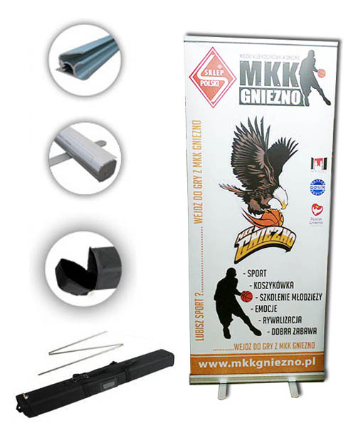 Dzięki dużej powierzchni reklamowej na roll-up-ach można umieścić bardzo dużo informacji, nie tracąc przy tym na czytelności przekazu reklamowego.Każdy roll-up wykonany jest z bardzo lekkiego aluminium i elementów prostych w montażu, które po złożeniu zajmują niewiele miejsca.Dodatkowo całość mieści się w poręcznym pokrowcu. To wszystko sprawia, że roll-upy są idealną reklamą do przewożenia i szybkiego montażu i demontażu w dowolnym miejscu.