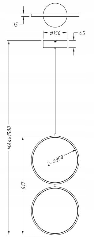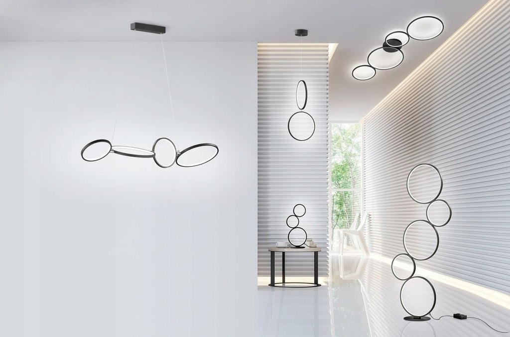 Nowoczesna lampa wisząca 2 punktowa z wbudowanym źródłem światła LED osłoniętym tworzywem sztucznym. Elementy metalowe wykończone w kolorze czarnym matowym. Jasność oprawy można regulować 3-stopniowo (100%, 50%, 25%) za pomocą typowego włącznika światła. Oprawy można dowolnie ustawić.
