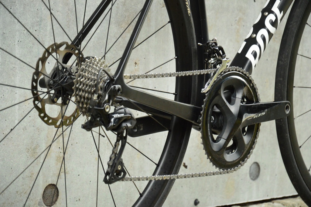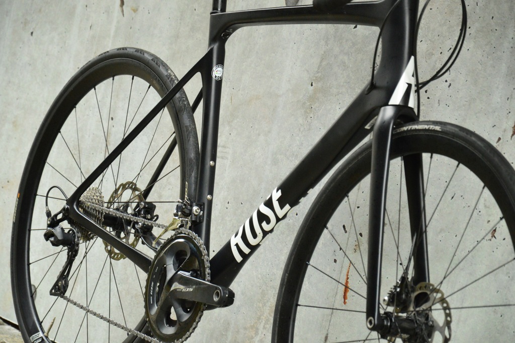 W rowerze zastosowano komplet osprzętu Shimano 105 – jeden z najbardziej cenionych zestawów na rynku, gwarantujący precyzyjne, płynne zmiany biegów i skuteczne hamowanie. Korba 52/36, kaseta 11-32 i 11-biegowy napęd zapewniają szeroki zakres przełożeń do każdego terenu. Koła ROSE R Thirty Disc Light w połączeniu z oponami Continental Grand Prix 5000 700x25C to pewność przyczepności i szybkości na asfalcie.