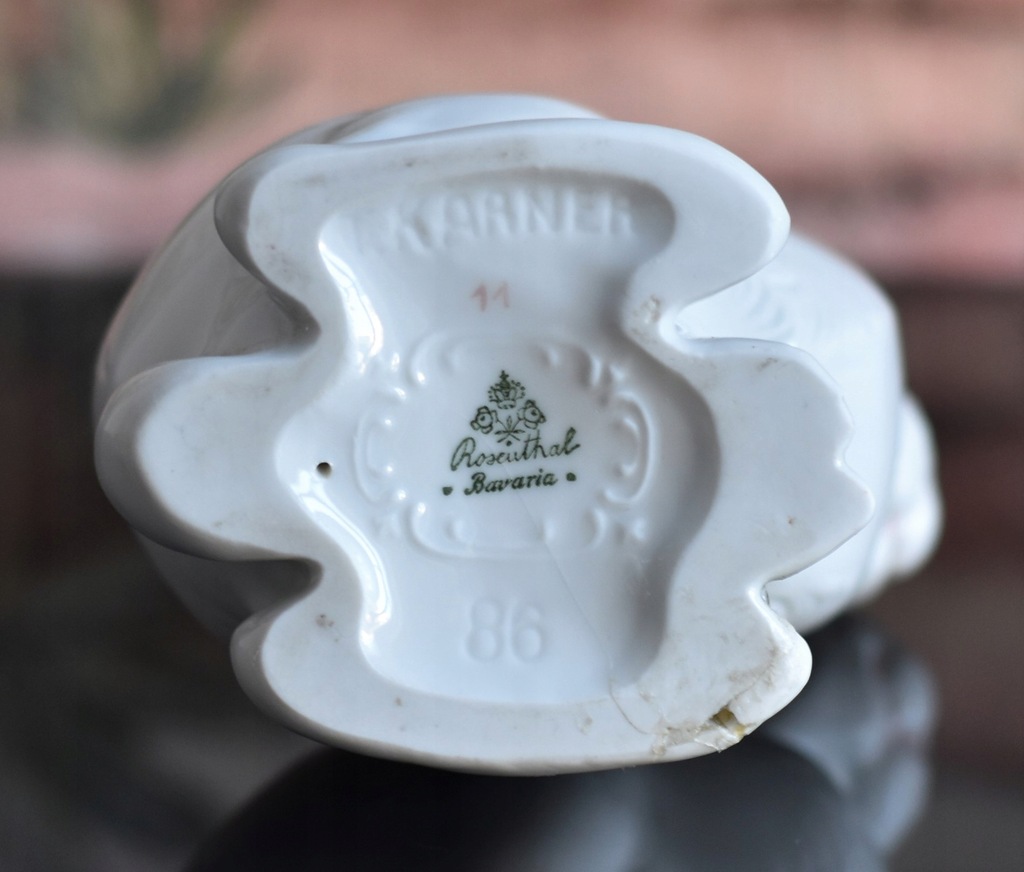 Stan: uszkodzenie na jednej nodze (klejone), od spodu w pobliżu tego uszkodzenia widać też ryskę włosowatą; poza tym ładny stan zachowania.
