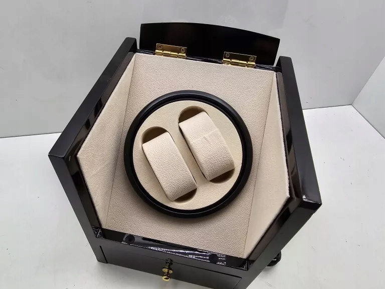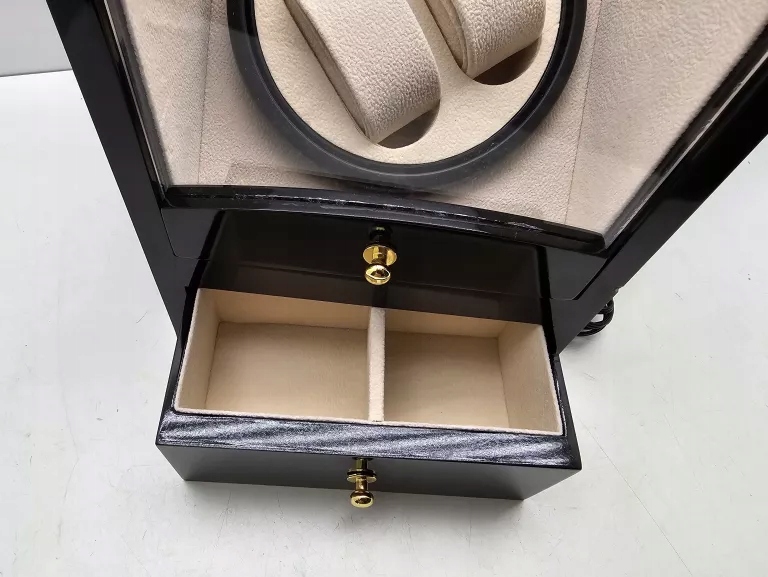 Na sprzedaż elegancki rotomat na dwa zegarki, w klasycznym czarnym kolorze. Jest to idealne rozwiązanie dla posiadaczy zegarków automatycznych, które wymagają ciągłego ruchu, aby ich mechanizm pozostawał sprawny i precyzyjny. Rotomat nie tylko dba o mechanizm zegarków, ale także stanowi stylową ozdobę wnętrza.