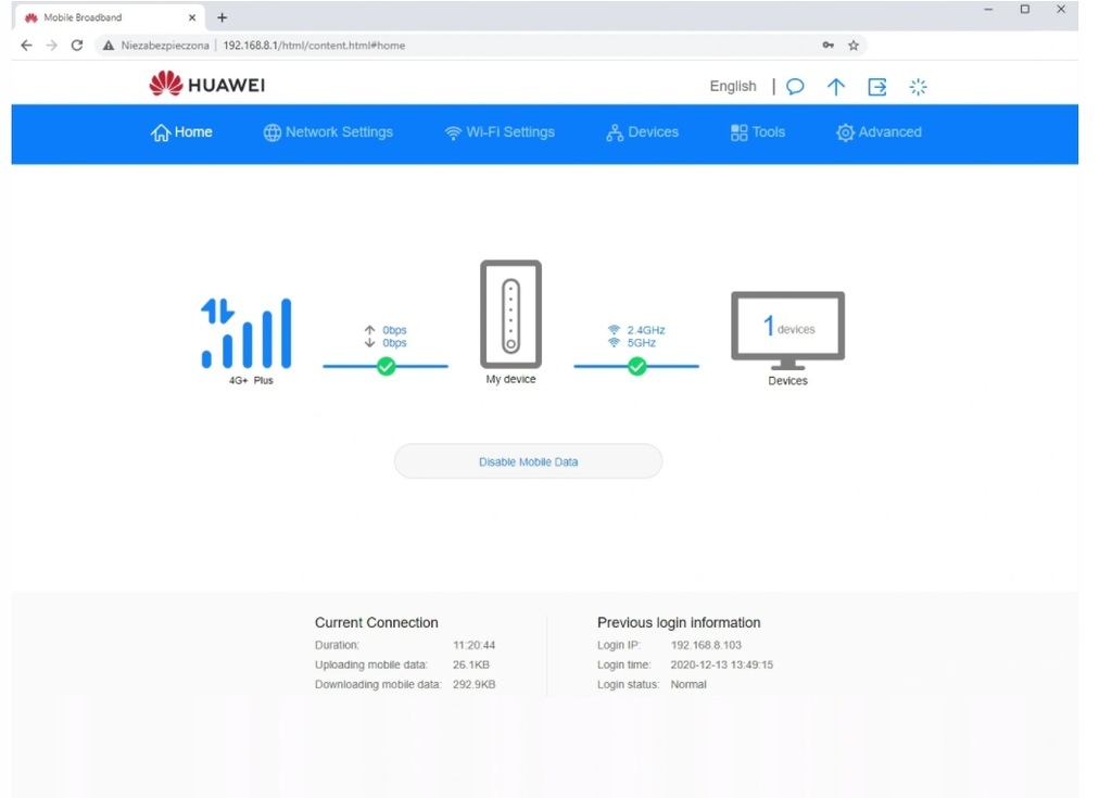 - zarządzanie w języku polskim przez Huawei Hilink na Androida oraz IOS