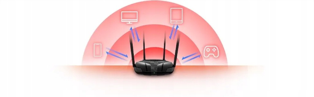 - Cztery razy większa wydajność działania – Technologie OFDMA i MU-MIMO umożliwiają podłączenie do sieci bezprzewodowej większej liczby urządzeń i widocznie zmniejszają opóźnienia w transmisji.