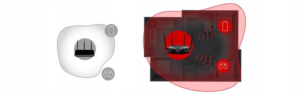 - Duży zasięg – Cztery anteny zewnętrzne o wysokim zysku pozwalają na utworzenie silnej i niezawodnej sieci bezprzewodowej, dostępnej na powierzchni całego domu.