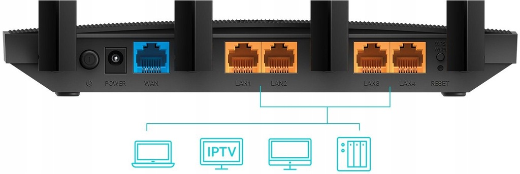 Bezprzewodowy router TP-Link MU-MIMO AC1900 Archer C80; • Obsługa standardu Wi-Fi 802.11ac Wave2 1300 Mb/s w paśmie 5 GHz i 600 Mb/s w paśmie 2,4 GHz. • Technologia 3×3 MIMO przesyłanie i odbieranie danych w trzech strumieniach umożliwia bezproblemowe parowanie z klientami 3 × 3. • Wzmocniony zasięg Wi-Fi technologia transmisji kierunkowej dba o wydajność połączeń bezprzewodowych. • MU-MIMO usprawniona komunikacja pomiędzy routerem a urządzeniami pozwala na optymalną wydajność ich działania. • Spersonalizowane zarządzanie zaawansowane funkcje, takie jak kontrola rodzicielska, sieć dla gości i kontrola dostępu to narzędzia, które zapewniają pełną personalizację ustawień sieci. :