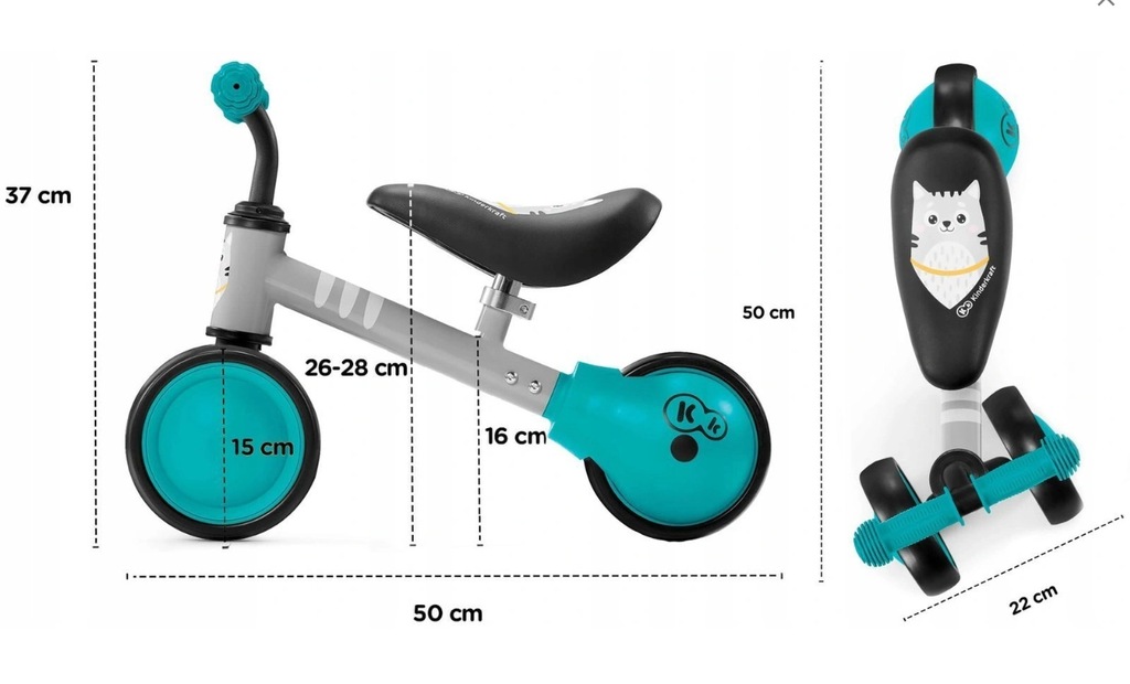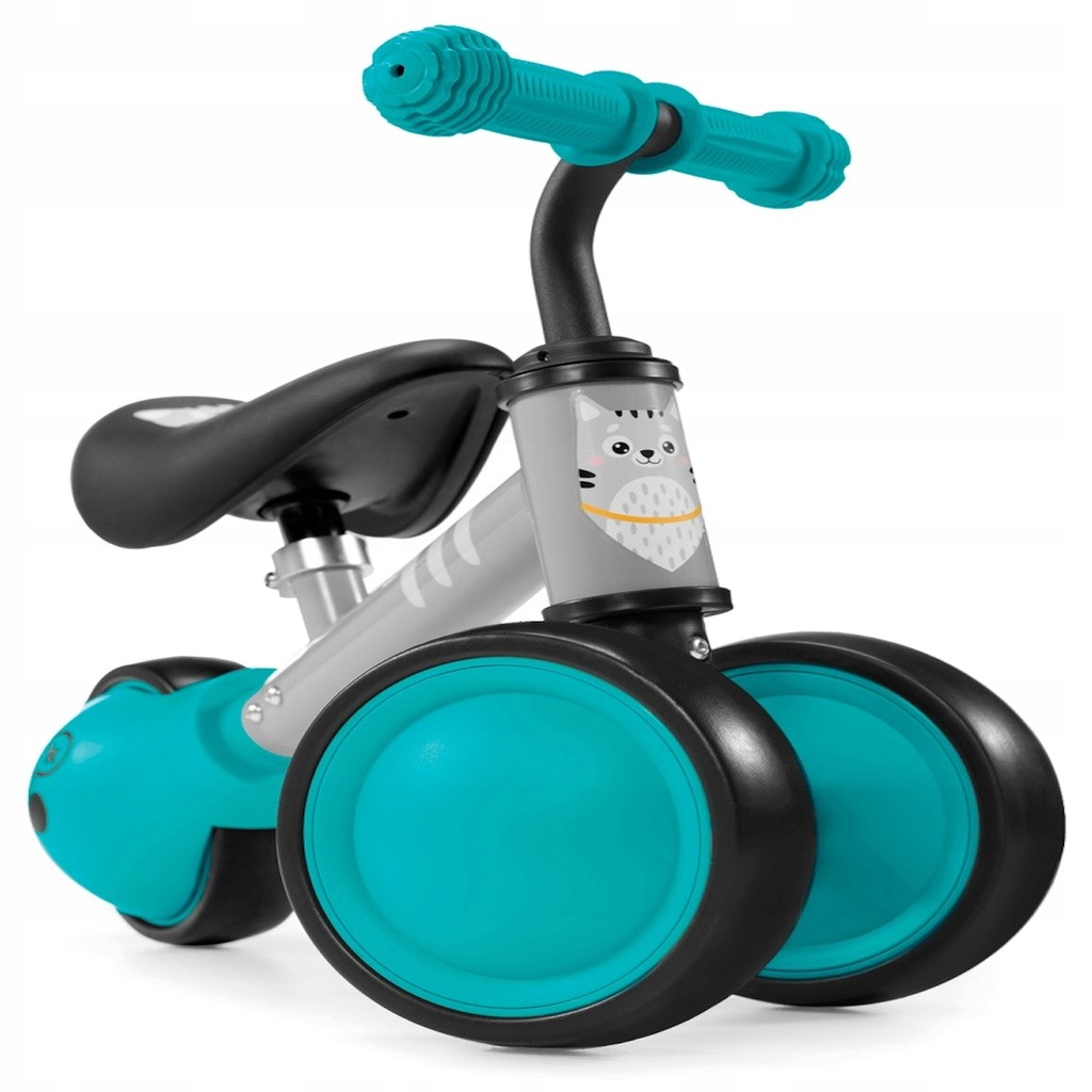 Rowerek biegowy Cutie będzie dobrym wyborem na pierwszy rowerek dla dziecka. Maluch będzie mógł dzięki niemu uczyć się równowagi i nabrać większej pewności. Będzie on niezastąpionym towarzyszem spacerów rodzinnych. Trzy koła sprawiają, że jest stabilny. Każde z nich wykonane jest z pianki Eva, a w tylnym kółku obecne są łożyska. Wysokość siodełka można regulować (26-28 cm) i dopasować do dziecka. Kierownica została wyposażona w blokadę skrętu, a na rączkach znajdują się antypoślizgowe gumy. Rowerek ten jest niezwykle lekki. Waży jedynie 1,8 kg.