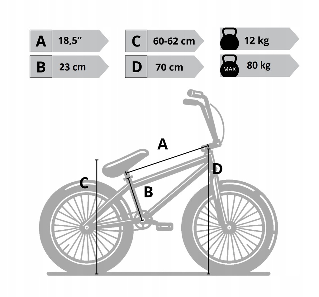 👌 Opony o rozmiarze 18 x 2.25 zapewniają przyczepność i stabilność podczas jazdy, natomiast brak amortyzacji pozwala na bardziej dynamiczną jazdę.