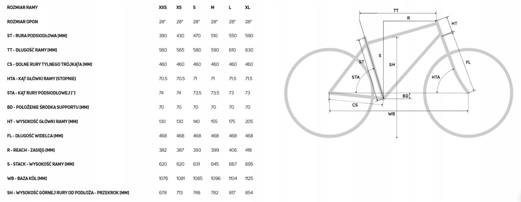 - Geometria: lekka i sztywna aluminiowa rama ma komfortową geometrię, która sprawdzi się zarówno podczas wycieczek, jak i na codziennych trasach,