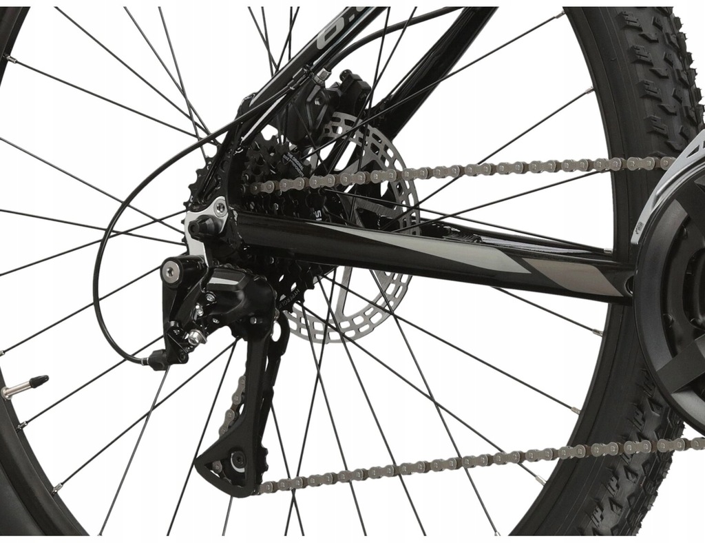 - Hamulce: Hydrauliczny hamulec tarczowy Shimano MT200