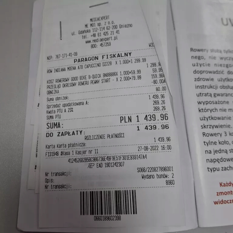 - Rower sprawny, może wymagać regulacji/przeglądu w serwisie,