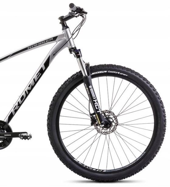 - Widelec: Suntour XCT HLO, skok 100 mm, z możliwością blokady, co pozwala na komfortową jazdę w trudnym terenie