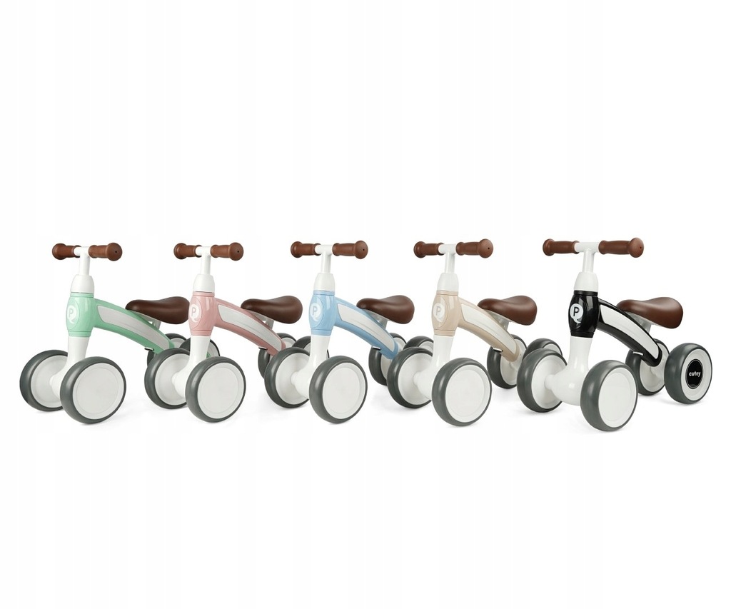 Cutey posiada podwójne kółeczka - łącznie 4, zapewniają one wyjątkową stabilność, opony wykonane z pianki EVA są ciche i pozwalają na używanie pojazdu zarówno w domu jak i na zewnątrz.