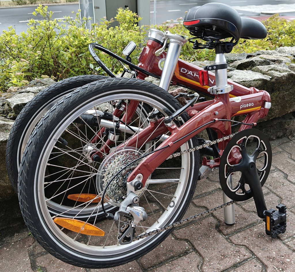 Dahon Piazza D8 to lekki (~12–13 kg) składany rower miejski o kołach 20″, zaprojektowany do szybkiego składania (ok. 10–15 s) i komfortowej jazdy w mieście. Dzięki aluminiowej ramie i technologii składania ViseGrip, po złożeniu zajmuje niewiele miejsca (ok. 84 × 40 × 65 cm). Zastosowany osprzęt – przerzutki Shimano Altus, hydrauliczne V‑Brakie – zapewnia niezawodność i sprawne hamowanie nawet przy sporcie miejskim.