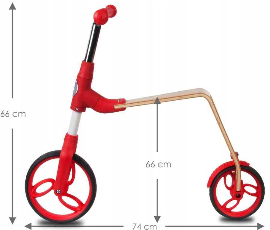 - Zmiana z rowerka biegowego w hulajnogę nie wymaga żadnych narzędzi.