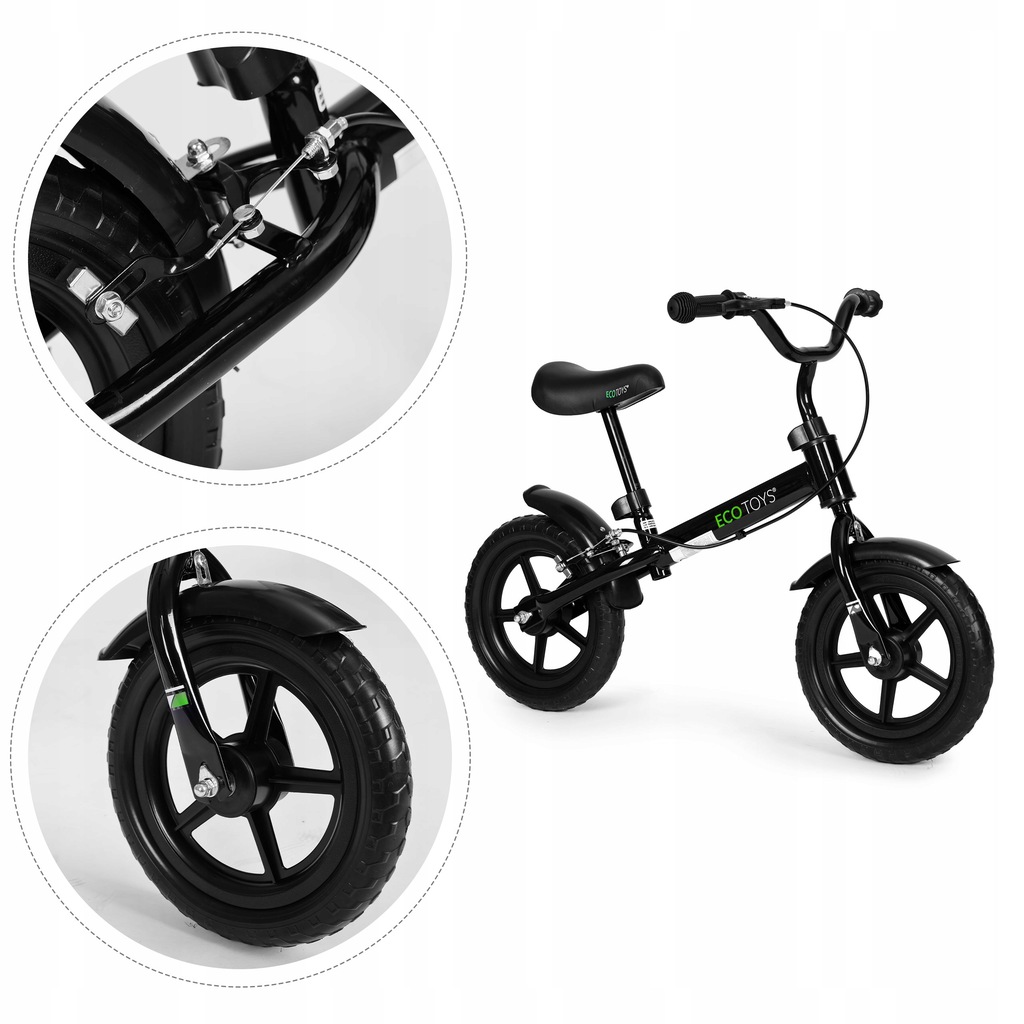 Rowerek rower biegowy z hamulcem dla dzieci koła EVA ECOTOYS czarny