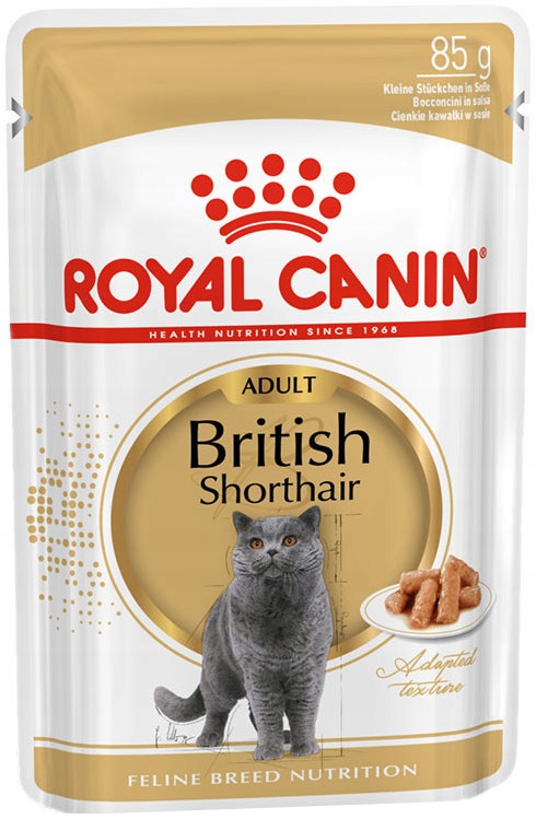 Mając na uwadze preferencje żywieniowe kotów, karma ROYAL CANIN® British Shorthair Adult jest dostępna także w formie kawałków w smakowitym sosie. W przypadku żywienia karmą mokrą i suchą należy zapoznać się z tabelą dawkowania, aby dobrać odpowiednią porcję poszczególnych karm.